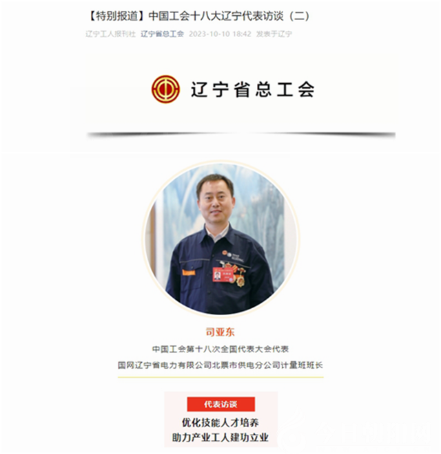 備受矚目的中國工會(huì)第十八次全國代表大會(huì)于2023年10月9日至13日在北京召開。國網(wǎng)遼寧省電力有限公司朝陽供電公司北票市供電分公司計(jì)量班班長司亞東,作為省內(nèi)國網(wǎng)系統(tǒng)唯一一位來自生產(chǎn)一線的職工,光榮當(dāng)選為大會(huì)代表。肩負(fù)著領(lǐng)導(dǎo)的信任、同事的囑托和時(shí)代賦予的職責(zé),司亞東開啟了赴京參會(huì)之旅。參會(huì)過程中,他充分利用業(yè)余時(shí)間,將參會(huì)經(jīng)歷和思想感悟?qū)懗扇沼洠⑼ㄟ^本網(wǎng)予以發(fā)布,期望能和廣大網(wǎng)友一起分享喜悅、交流心得。