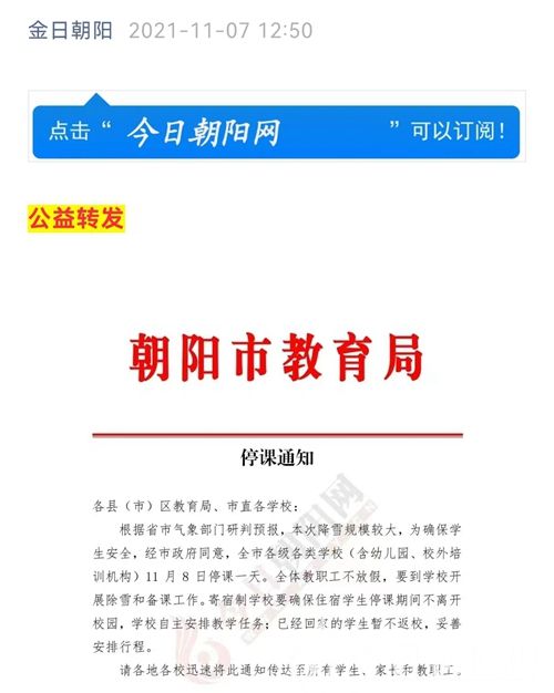剛剛,本網(wǎng)編輯部接到朝陽(yáng)市一網(wǎng)友電話,說(shuō)在本網(wǎng)所屬公眾號(hào)——“金日朝陽(yáng)”上看到“11月8日停課一天的《朝陽(yáng)市教育局停課通知》”,并發(fā)來(lái)了截圖,咨詢是否屬實(shí)?