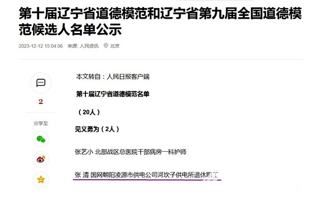 再傳喜訊!國(guó)網(wǎng)朝陽(yáng)供電公司退休職工獲評(píng)第十屆遼寧省道德模范