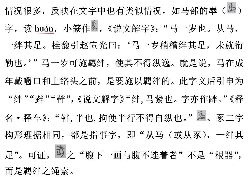 其實,后世學者否定許慎釋“豖”之關鍵有二:一、就字形言,在于豕腹下一畫與豕身不連著者,是豕之“去勢”,即閹掉之“根器”(雄性生殖器),還是羈絆之索繩。二、豖字的讀音與釋義。聞一多先生認為:“豖之本義,當求之于經傳之椓及斀劅等字。……案椓劅斀并與豖音同義通,豖本豕去陰之稱,通之于人,故男子宮刑亦謂之豖。詩書作椓,用借字。鄭作劅,許作斀者,并后起形聲字,許君訓斀為去陰刑,故無可議,特不知豖乃其最初文耳。”⑨也就是說,聞一多先生以與豖字“音同義通”的椓劅斀字以證“豖本豕去陰之稱”。
