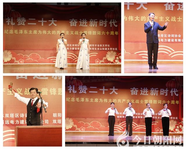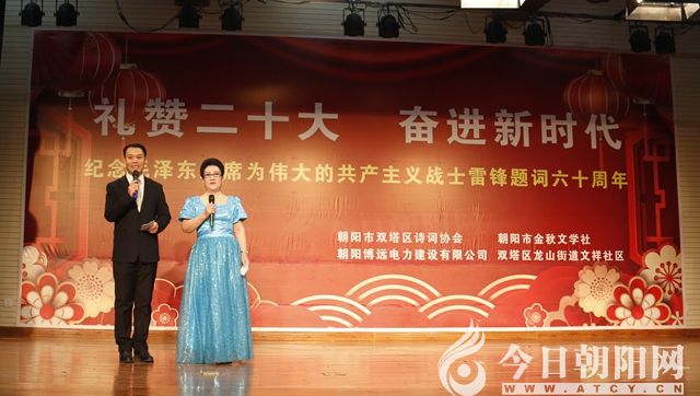 為弘揚(yáng)雷鋒精神,傳播正能量,樹立新風(fēng)尚,3月5日,遼寧省朝陽市雙塔區(qū)詩詞協(xié)會、朝陽博遠(yuǎn)電力建設(shè)有限公司、雙塔區(qū)龍山街道文祥社區(qū)、朝陽金秋文學(xué)社聯(lián)合舉辦了“禮贊二十大 奮進(jìn)新時代”紀(jì)念毛澤東為雷鋒同志題詞六十周年文藝演出活動。雙塔區(qū)文聯(lián)主席馮宇濤、原雙塔區(qū)文聯(lián)主席鄭繼超、雙塔區(qū)文藝家協(xié)會秘書長劉麗華、雙塔區(qū)文聯(lián)辦公室主任聶莎莎受邀出席,活動由雙塔區(qū)詩詞協(xié)會主席曹永玲主持。