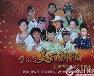 2011年9月4日,《朝陽(yáng)新風(fēng)吹》張黎、秦詠誠(chéng)、徐沛東經(jīng)典作品音樂(lè)會(huì);2011年12月26日,《紅歌中國(guó)行》丁曉紅朝陽(yáng)公益演唱會(huì)暨朝陽(yáng)迎新晚會(huì);2012年12月25日,朝陽(yáng)市《2013美麗朝陽(yáng)》迎新年文藝晚會(huì);2013年8月30日,中央歌劇院主辦的《我們走在大路上》劫夫作品音樂(lè)會(huì);2013年2月2日,《盛世高歌》2013春節(jié)文藝晚會(huì),這幾場(chǎng)演出的節(jié)目單真是讓人大開(kāi)眼界。