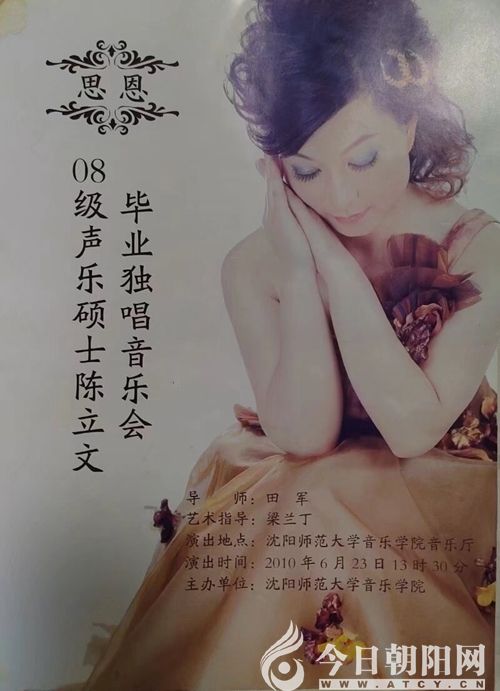 2010年6月23日,朝陽(yáng)師專聲樂(lè)教師陳立文在沈陽(yáng)師范大學(xué)讀聲樂(lè)碩士研究生舉辦畢業(yè)獨(dú)唱音樂(lè)會(huì)。