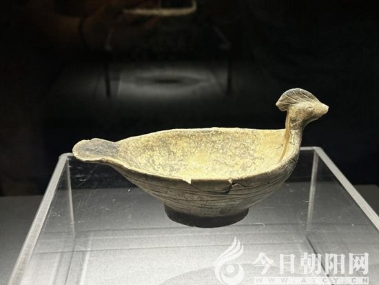 在赤峰博物館,我們又看到了陶鳳杯。陶鳳杯出土于趙寶溝文化遺址。而這個陶鳳杯上的鳳造型頭、冠、翅和尾與中華傳統(tǒng)的“鳳”極為接近,文物專家斷定,陶鳳杯上的“鳳”堪稱“中華第一鳳”。我們可以想象,在距今6800年前,這只陶鳳杯或盛滿美酒,或盛滿鮮果,被供奉在廟堂之上,接受著人們的膜拜,給予人們美好的希望。