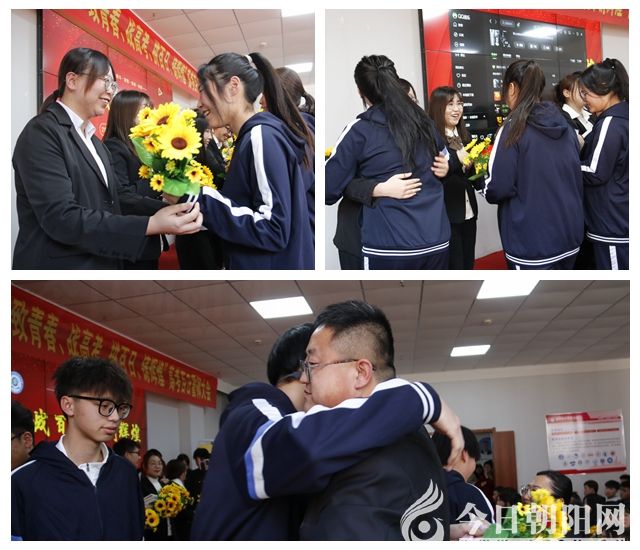 最為感人的一幕是教師領(lǐng)誓環(huán)節(jié),師生們鄭重宣誓,鏗鏘誓言在多功能演播廳內(nèi)回蕩,每一字每一句都顯得格外堅(jiān)定而有力。隨后,老師向同學(xué)們贈(zèng)送了向日葵花和封面上印有“前程似錦”“金榜題名”“未來可期”等祝福語的精美日記本。深情地?fù)肀Ш驼嬲\地祝福,讓這份情感更加深厚。