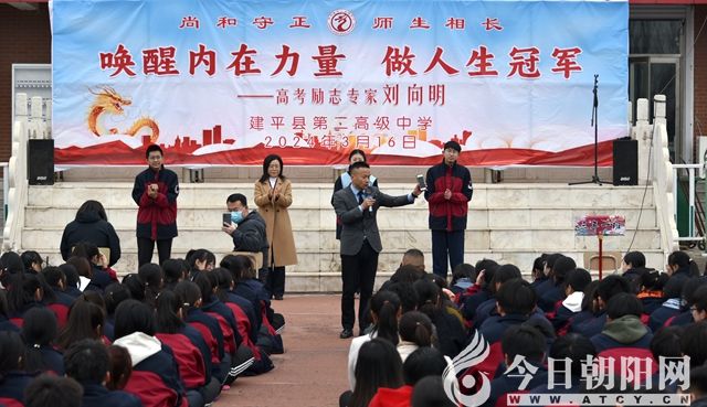 凝心聚力再激勵(lì),砥礪前行更奮進(jìn)。為了進(jìn)一步增強(qiáng)學(xué)生的學(xué)習(xí)動(dòng)力,明確學(xué)生的人生目標(biāo),以更加昂揚(yáng)的斗志迎接高考,3月16日,遼寧省建平縣第二高級(jí)中學(xué)舉辦了主題為“喚醒內(nèi)在力量 做人生冠軍”勵(lì)志演講會(huì),邀請著名勵(lì)志演說家劉向明作主題演講。黨委書記李樹杰,黨委副書記、校長陳健全,高三領(lǐng)導(dǎo)及全校高三師生參加了演講會(huì)。演講會(huì)由高三年級(jí)主任李德榮主持。