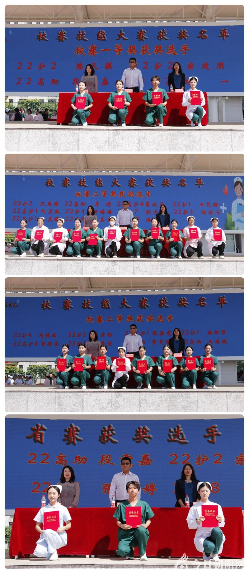 活動現(xiàn)場,校領導為參加遼寧省第二十一屆職業(yè)院校技能大賽中職組護理技能賽項和2023年朝陽市衛(wèi)生學校護理技能大賽的38名獲獎選手頒發(fā)了榮譽證書。他們在比賽中展現(xiàn)了扎實的護理基本功和良好的禮儀風貌,為衛(wèi)校護理學子樹立了典范,為學校的護理教育、內(nèi)涵建設增添了動力、注入了活力。
