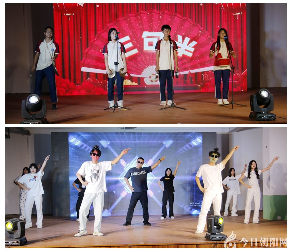 在這個特殊的日子里,教師們也用他們的才藝和熱情回應著學生們。校領導班子帶來的大合唱《眾人劃槳開大船》《祖國不會忘記》展現(xiàn)了學校骨干力量的凝聚力;學生科攜全體班主任將詩朗誦與舞蹈完美結合,展現(xiàn)了教師們的風采;招生辦的老師們帶來了一曲動聽的歌曲串燒,燃爆全場;武躍輝老師演唱的評劇唱段《鳳求凰》,精湛的演技和深情的演唱贏得了全場師生的熱烈掌聲;教務科全體老師則用一支現(xiàn)代舞《相親相愛》表達了對同學們的深深愛意和殷切期望;執(zhí)行董事王孝久的詩朗誦《我是朝陽人》,字字句句都是對家鄉(xiāng)的深情厚誼和家國情懷,將全場師生的心緊緊連在一起。