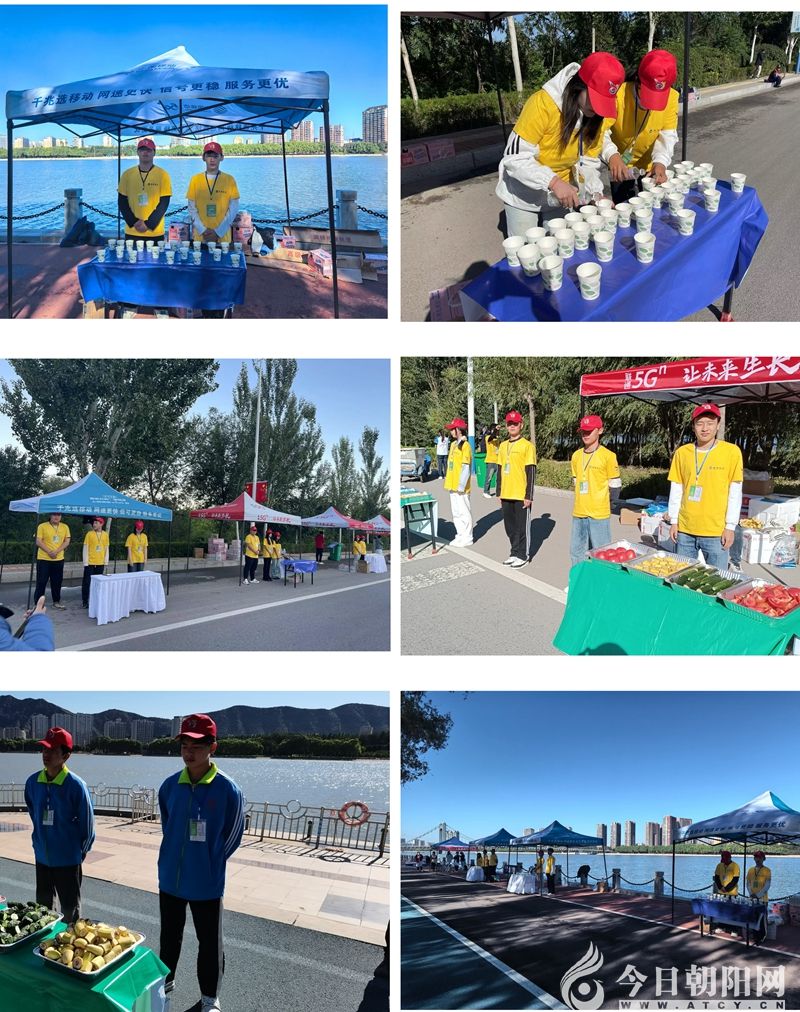 比賽開始后,志愿者們身著黃色服裝,頭戴紅色帽子,以飽滿的熱情和專業(yè)認(rèn)真的服務(wù)態(tài)度活躍在各個補給站。他們?nèi)缤硪坏漓n麗的風(fēng)景線,為參賽選手提供堅實的補給保障。運動員們挑戰(zhàn)自我、堅持不懈、永不放棄的精神深深觸動著志愿者們,他們熱情地為選手提供周到的服務(wù),并為其吶喊助威,展現(xiàn)了朝陽人的良好形象。