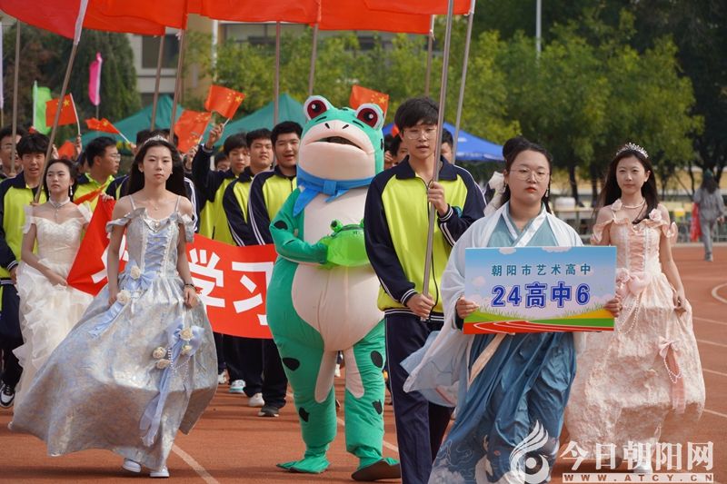校旗方隊(duì)緊跟其后,校旗在風(fēng)中獵獵作響,象征著朝陽(yáng)市財(cái)經(jīng)學(xué)校、朝陽(yáng)市藝術(shù)高中的獨(dú)特風(fēng)采與團(tuán)結(jié)奮進(jìn)的精神。隨后而來(lái)的彩球方隊(duì)和紅旗方隊(duì)洋溢著青春的活力。