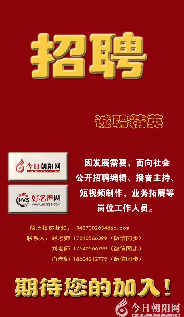 今日朝陽(yáng)網(wǎng)、好名聲網(wǎng)隸屬于朝陽(yáng)云時(shí)代文化信息傳播有限公司,因發(fā)展需要,即日起特面向社會(huì)公開招聘編輯、播音主持、短視頻制作、業(yè)務(wù)拓展等崗位工作人員,報(bào)名截止時(shí)間為3月9日。