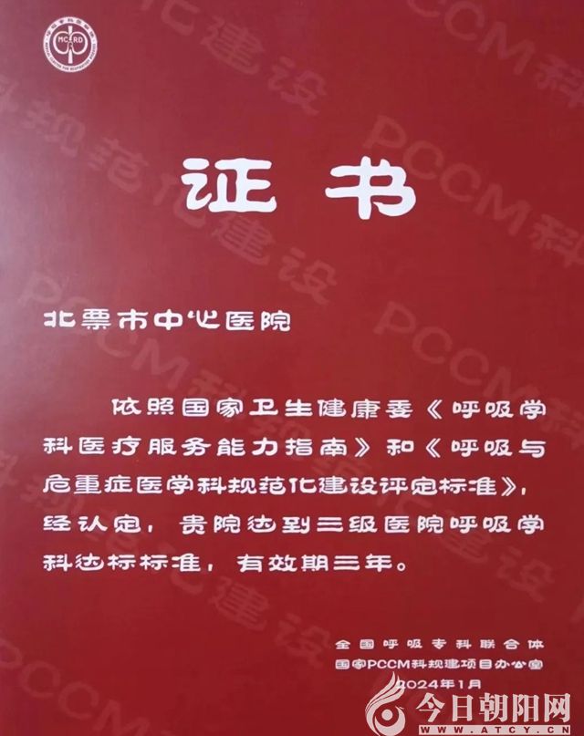 北票市中心醫(yī)院呼吸與危重癥醫(yī)學(xué)科榮獲 “PCCM規(guī)范化建設(shè)認(rèn)證達(dá)標(biāo)證書”