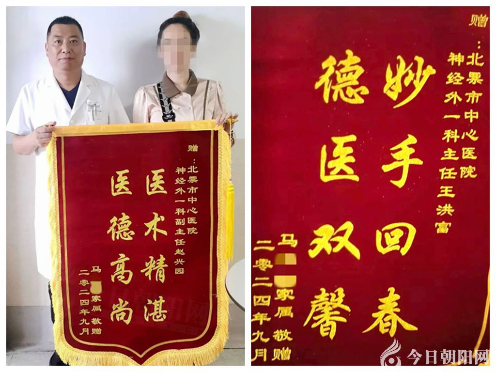 在神經(jīng)外一科,一名腦出血患者家屬贈(zèng)送的寫有“妙手回春 德藝雙馨”“醫(yī)術(shù)精湛 醫(yī)德高尚”字樣的兩面錦旗格外顯眼。經(jīng)了解,科主任王洪富、副主任趙興園根據(jù)患者病情,有針對(duì)性地制定個(gè)性化治療方案,提出有效治療措施。通過神經(jīng)外一科全體醫(yī)護(hù)人員的共同努力,患者康復(fù)出院。