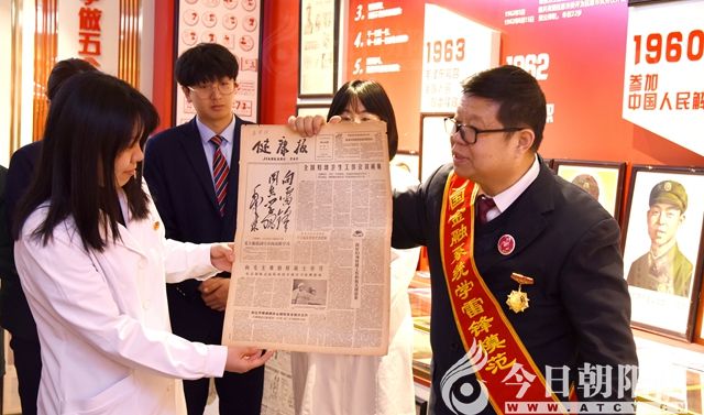 王建國多年來收集與雷鋒相關的文化藏品超萬件,并矢志不渝地宣傳、學習、踐行雷鋒精神。參觀過程中,王建國更是拿出了珍藏的1963年3月5日《健康報》刊登的毛澤東題寫的“向雷鋒同志學習”手跡,這也是他首次對外展示此份報紙。