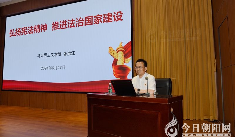 在學(xué)術(shù)報(bào)告廳內(nèi),一行人認(rèn)真聆聽了錦州醫(yī)科大學(xué)馬克思主義學(xué)院院長(zhǎng)張洪江的專題黨課。張洪江以《弘揚(yáng)憲法精神 推進(jìn)法治國(guó)家建設(shè)》為主題,圍繞歷史維度、文本維度、實(shí)踐維度三個(gè)方面,結(jié)合典型案例,深入細(xì)致地講述了憲法含義、憲法精神以及全面推進(jìn)法治國(guó)家建設(shè)的必要性。大家表示,此次黨課受益匪淺,在學(xué)習(xí)憲法知識(shí)的同時(shí),強(qiáng)化憲法意識(shí),樹立法治思維,將把憲法精神落實(shí)到具體工作中。