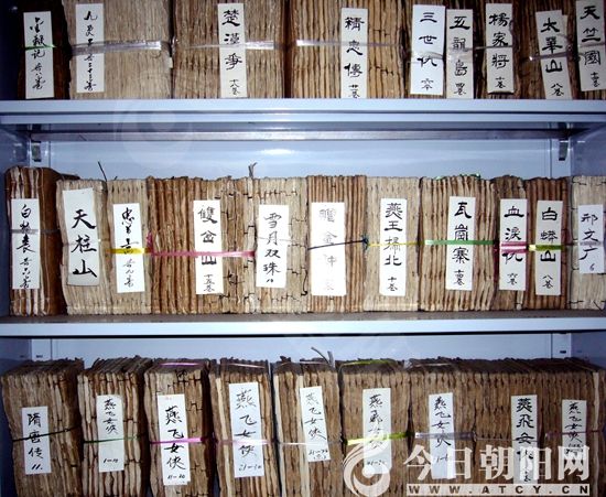 可喜的是,在這方面,凌源市文化館的韓琢同志(現(xiàn)已退休)做了大量工作。他幾十年如一日,跑遍了凌源市及周邊地區(qū)的溝溝巷巷,搜集了大量的影卷和民間皮影資料。目前,經(jīng)他組織搜集整理,凌源市已收藏中國北方皮影戲影卷多達(dá)320種、3400卷。