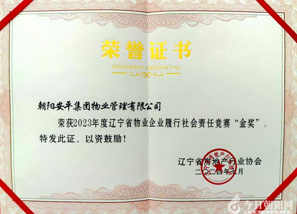 大會還向在2023年度遼寧省物業(yè)服務(wù)項(xiàng)目高質(zhì)量發(fā)展競技大賽中的獲獎單位頒獎。其中,安平物業(yè)榮獲2023年度遼寧省物業(yè)企業(yè)履行社會責(zé)任競賽“金獎”;安平物業(yè)管理的朝陽師范高等專科學(xué)校項(xiàng)目在2023年度遼寧省物業(yè)非住宅管理示范項(xiàng)目高質(zhì)量服務(wù)競賽中榮獲“金獎”。安平物業(yè)參會代表表示,“金獎”是大家愛崗敬業(yè)、齊心協(xié)力取得的榮譽(yù),這也激勵我們在今后的工作中始終堅(jiān)持用心服務(wù),不斷開拓進(jìn)取,持續(xù)提高業(yè)務(wù)水平和服務(wù)質(zhì)量。
