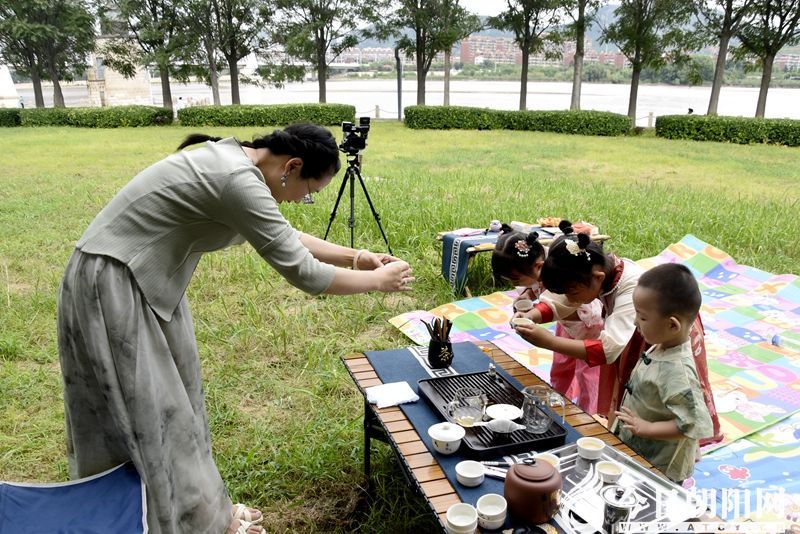 風(fēng)送爽,人歡暢。8月24日下午,遼寧省朝陽市珠江大橋西橋頭南側(cè)的人工湖畔,人影翩翩,笑語盈盈,茶香裊裊,一場溫馨雅致的“茶和天下·韻起朝陽”教師節(jié)主題茶敘活動在溫柔的陽光中緩緩拉開序幕。此次活動由朝陽云時代文化信息傳播有限公司主辦,今日朝陽網(wǎng)、好名聲網(wǎng)(以下簡稱“兩網(wǎng)”)編委會承辦,部分編委會成員、茶文化愛好者及教師、小朋友參加。