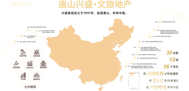 興盛集團,堅持“真實做人、誠信待人、重約守諾、爭創(chuàng)一流”的企業(yè)精神,“質(zhì)量第一、信譽至上”的經(jīng)營理念,自1991年成立以來始終保持健康快速發(fā)展,在多個項目中獲得較高投資回報,公司不斷發(fā)展壯大。自企業(yè)于唐山地區(qū)創(chuàng)建以來,二十多年的成長與積累,先后在沈陽、青島、承德、朝陽、武漢、昆明等地成立地產(chǎn)分公司,將企業(yè)精神的種子播散在更加廣闊的土地之上。后又成立北京、上海、深圳投資公司以及影視制作公司,投身金融及文化影視制作領(lǐng)域,使企業(yè)發(fā)展更加全面化、多樣化、立體化,在房地產(chǎn)、文旅、金融三大板塊日臻成熟。