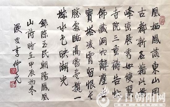 受之于會長的引領(lǐng)和中華詩詞論壇壇主薄文忠先生的鼓勵,我也投身于百米長卷的創(chuàng)作中來。根據(jù)活動要求,我寫的詠朝陽《鳳凰山》詩,需要自寫或邀請一位重量級的書法大家為其書寫,方能收之于詩詞長卷。我的書法手笨筆拙,難成大雅,只能結(jié)緣一位書法名家,共襄此事。我結(jié)識一大批書法家,竟一時不知邀請哪位更覺合適。我深知有些書法家位重墨貴,沒有一定的身價或潤格是請不動的。說實在的,雖然有些書法家牌很亮、名很響,但其書法并不能讓我認(rèn)同。而讓我認(rèn)同心儀的又擔(dān)心被拒絕。我想,參與《詩詞書法百米長卷》是與諸多詩人書法家合璧亮相的極好機(jī)會。如果可能,一定要找一位自己欽佩仰慕的大家進(jìn)行合作,或者說給自己創(chuàng)造一次“傍大款”的機(jī)會。一番掂量、權(quán)衡、比較過后,決定邀請當(dāng)今書法、詩詞創(chuàng)作雙絕的大家李仲元先生。此想法一出,便有幾分惴惴。且不說仲元老是否能放下身段愿意為其書寫,單就他老人家年屆90這樣的高齡,提出這樣的請求,已經(jīng)是不情之求了。理智讓我又放下這個意向,再邀他人??伤尖庠偃?,最終還是鼓足勇氣,通過微信向仲元老冒昧發(fā)出邀請,請求他老人家揮豪助力,在詩詞長卷上留下筆墨。