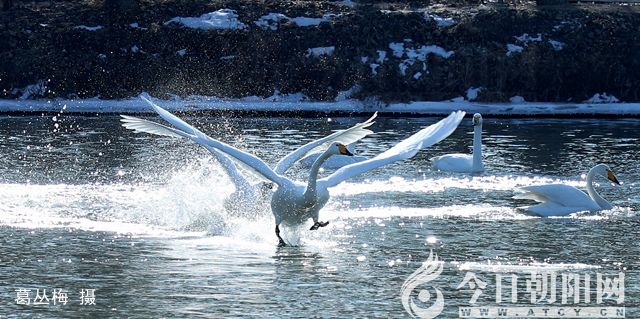 你看!凌水中的天鵝千姿百態(tài)、婀娜多姿