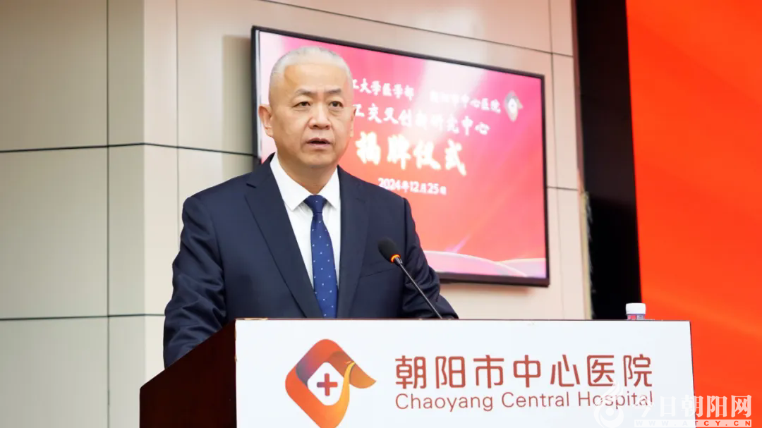曲鵬在致辭中表示,醫(yī)工交叉創(chuàng)新研究中心揭牌,標(biāo)志著雙方在醫(yī)工合作上取得了實(shí)質(zhì)性的進(jìn)展,為雙方優(yōu)勢互補(bǔ)、互利共贏搭建了重要平臺,我們將依托醫(yī)工交叉創(chuàng)新研究中心,與朝陽市中心醫(yī)院共同探索醫(yī)學(xué)教育與臨床實(shí)踐的深度融合,推動醫(yī)學(xué)交叉研究和成果轉(zhuǎn)化,為提高朝陽醫(yī)療服務(wù)水平、促進(jìn)朝陽人民健康福祉做出更大的貢獻(xiàn)。今后,雙方將重點(diǎn)在三個方面開展工作:一是推進(jìn)人才培養(yǎng)。雙方互聘專家,積極探索研究生聯(lián)合培養(yǎng)等相關(guān)工作,共同將朝陽市中心醫(yī)院打造成我校醫(yī)工交叉人才培養(yǎng)的重要基地。二是深化科研合作。雙方共同開展重大疾病的基礎(chǔ)研究和臨床應(yīng)用研究,助力朝陽市醫(yī)療水平顯著提升。三是實(shí)現(xiàn)資源共享。充分利用雙方的資源優(yōu)勢,加強(qiáng)在醫(yī)療數(shù)據(jù)、文獻(xiàn)資料、信息技術(shù)等方面的資源共享,提高資源利用效率,為雙方的發(fā)展提供有力保障。