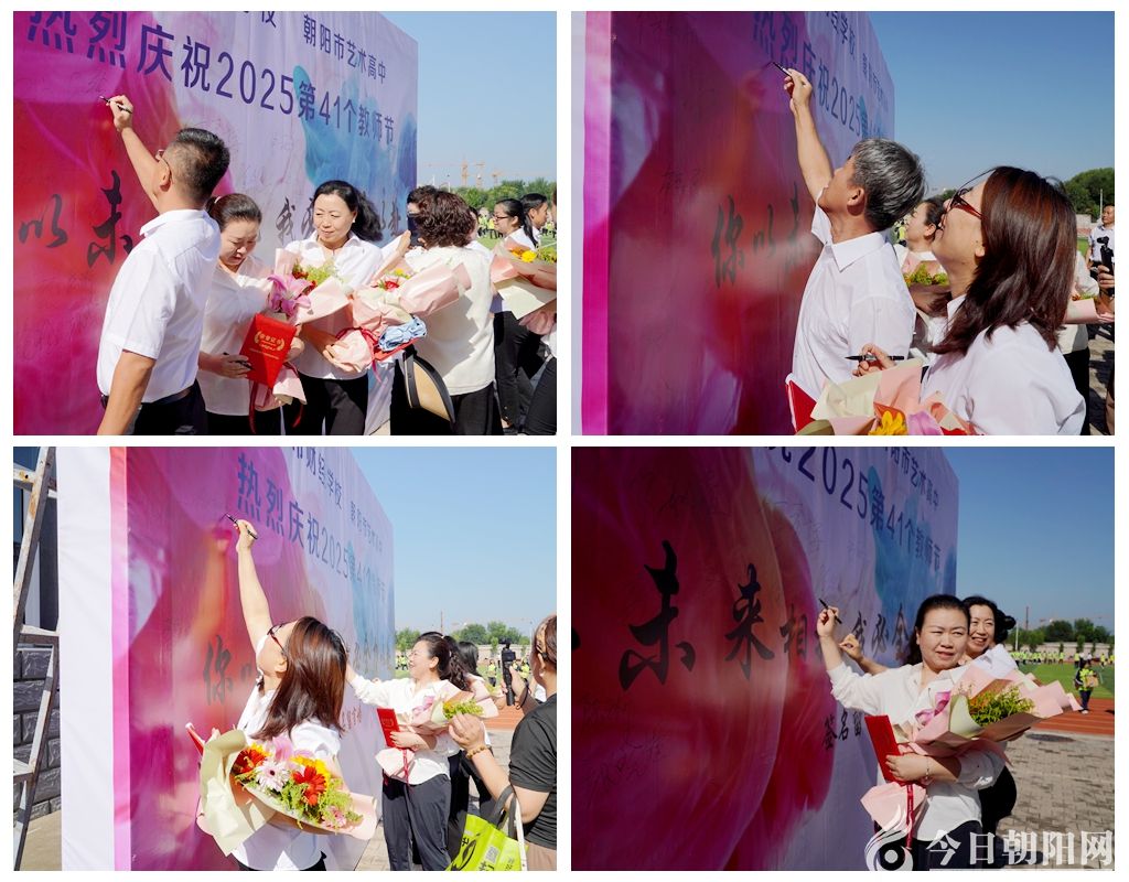 最后,藝術(shù)部師生獻上的音詩畫《鞠躬教壇 強國有我》將典禮推向高潮。鏗鏘的詞句與真摯的情感交織,表達出對教育事業(yè)的無限熱愛和對祖國的莊嚴承諾,感人至深,引來全場陣陣掌聲。典禮尾聲,教師們紛紛走向簽名墻,鄭重留下自己的姓名,以行動詮釋育人初心與使命擔當。