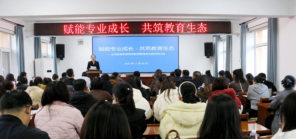 11月28日上午,以“賦能專業(yè)成長 共筑教育生態(tài)”為主題的全市教育系統(tǒng)特殊教育管理者及教師培訓會在遼寧省朝陽市特殊教育中心順利舉行。全市特殊教育教研員、各特教學校管理者、教師及部分融合教育教師參加培訓,共同聚焦特教課程建設與教師專業(yè)成長,凝聚特教高質(zhì)量發(fā)展合力。培訓會由朝陽市教師進修學院小教部主任、特殊教育研究員張寶明主持。