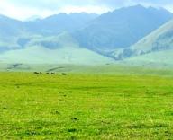 凌晨5點出發(fā),天光初現(xiàn),霧氣朦朧。大巴車走出不遠,就見前面的山坡上有十幾匹棗紅馬在活動,每匹馬都膘肥體壯,有的臥在草地上,有的正在悠然地低頭吃著青草。這些馬匹被圈在簡單的木柵欄里,柵欄是用幾根細木頭綁扎在一起的,更像個形式。旁邊是幾頂白氈房,早起的牧民正在洗漱,他們正在滿懷信心迎接新的一天的開始。
