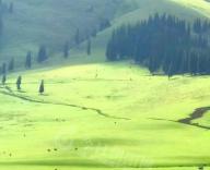 離開喀納斯湖,搭載景區(qū)游覽車10幾分鐘后到了“三灣”之一的神仙灣。所謂“三灣”都是由喀納斯河在此長期側(cè)蝕沖刷,形成的一連串岸線曲折的河灘。神仙灣被譽為“神的后花園”。長堤下,陽光輕柔地撫照著茵茵綠草,草場后面是墨染一樣的森林。草地上,野花盛開,蝴蝶飛舞,盡管有游人的喧鬧,但依然顯得很幽靜。有幾個游客抵御不住誘惑,躺倒在舒緩的草坡上,仰臉朝天用涼帽遮蓋著面部,他們似乎放下了紅塵中的一切煩憂,沉醉在這人間仙境之中,那一幕如影隨形跟隨了我很久,直到現(xiàn)在也揮之不去。我清楚,那也是我向往的終極生活。