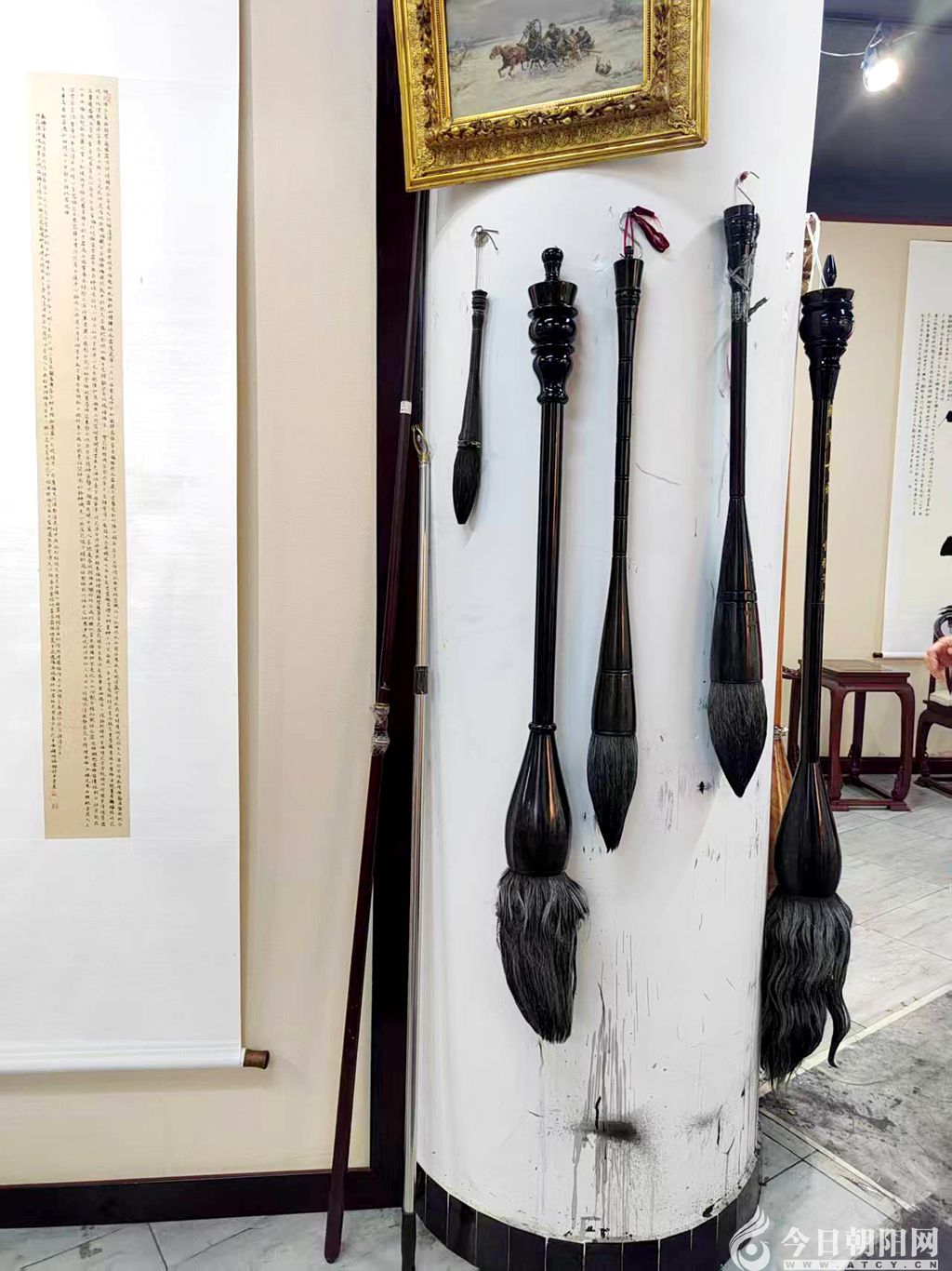 環(huán)顧這個(gè)充滿墨香的工作室,看著墻上懸掛的特大號(hào)毛筆和滿架的書帖,我仿佛看見(jiàn)了一個(gè)默默耕耘的身影,一位不僅以筆墨傳承文化,更以真心溫暖一方的書法帶頭人。