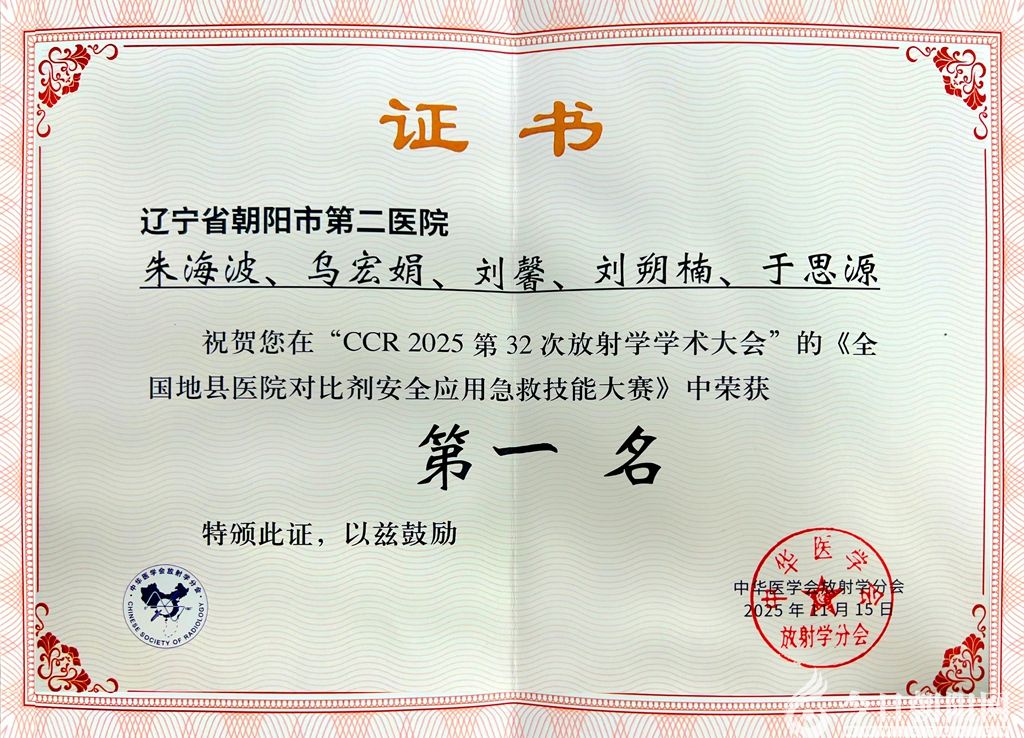 此次獲獎,不僅是對朝陽二院放射影像科專業(yè)能力的充分肯定,也是科室長期重視臨床技能培訓(xùn)、強化應(yīng)急管理建設(shè)的成果體現(xiàn)。作為市級三甲醫(yī)院的重點學(xué)科,放射影像科將繼續(xù)堅持以患者為中心,不斷提升專業(yè)技能,優(yōu)化應(yīng)急流程,加強團隊協(xié)作,為守護區(qū)域群眾健康、推動放射學(xué)科高質(zhì)量發(fā)展貢獻力量。