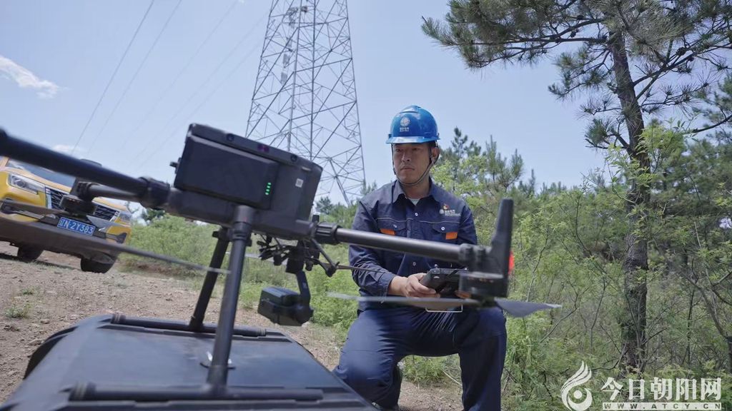 這位國(guó)網(wǎng)朝陽(yáng)供電公司輸電工區(qū)的班長(zhǎng),已經(jīng)在這條電力動(dòng)脈上守護(hù)了十四年,翻山越嶺成了日常,皮卡車(chē)上的顛簸早已刻進(jìn)了身體里。山風(fēng)掠過(guò)他古銅色的面龐,目光如鷹隼般銳利,正調(diào)試著無(wú)人機(jī)遙控器,透過(guò)屏幕一寸寸檢閱著鐵塔的每一個(gè)螺栓、每一片絕緣子,任何細(xì)微的裂紋都逃不過(guò)他的眼睛。