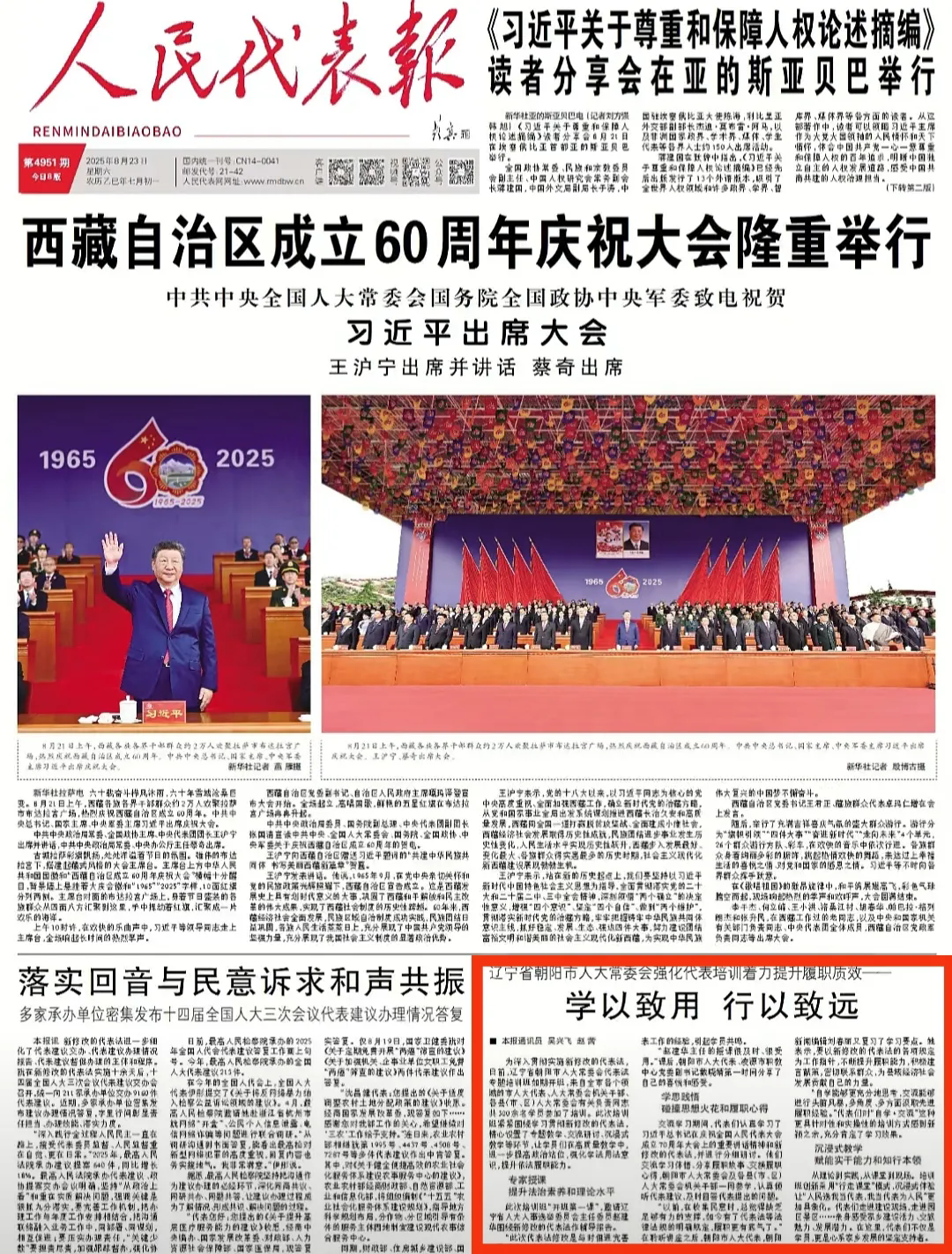 8月23日,《人民代表報(bào)》頭版刊發(fā)《遼寧省朝陽(yáng)市人大常委會(huì)強(qiáng)化代表培訓(xùn)著力提升履職質(zhì)效——學(xué)以致用 行以致遠(yuǎn)》,全文如下: