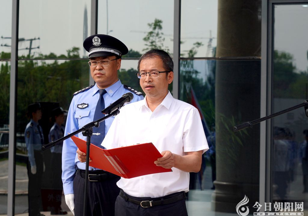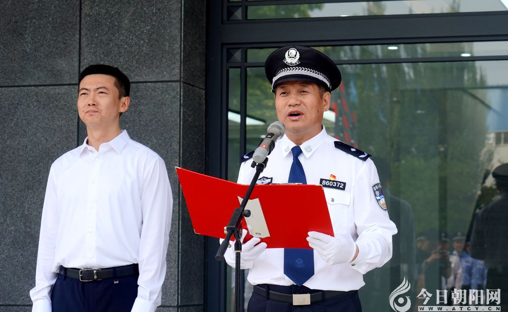 隨后,張新天與雙塔區(qū)委書記李鴻雁共同為分局揭牌,紅綢落下,“朝陽市公安局雙塔分局”的嶄新牌匾亮相,現(xiàn)場掌聲雷動。