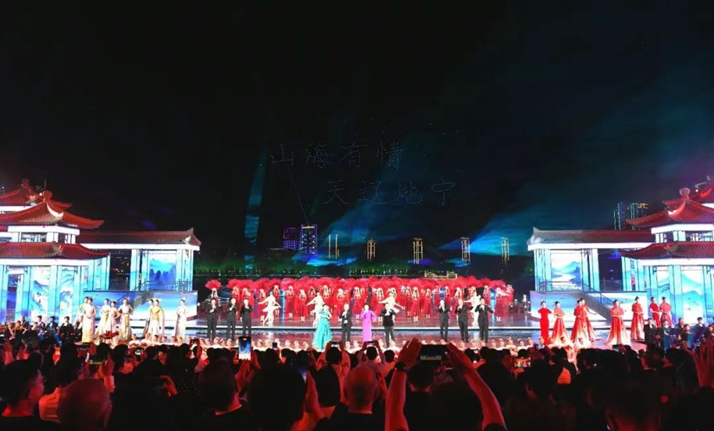 與會(huì)領(lǐng)導(dǎo)、嘉賓和社會(huì)各界群眾代表在朝陽大凌河輝煌廣場(chǎng)共同觀看《向遼而行 一路朝陽》文藝推介展演。