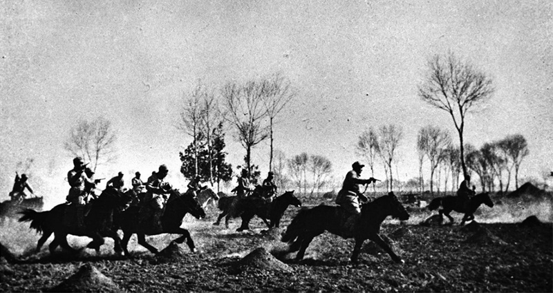 抗日戰(zhàn)爭期間,八路軍深入敵后戰(zhàn)場,英勇戰(zhàn)斗,取得平型關(guān)大捷、百團大戰(zhàn)等重大勝利,牽制和消滅了侵華日軍大量兵力,是中國抗戰(zhàn)的中堅力量。圖為戰(zhàn)斗在敵后的八路軍騎兵(1941年攝于冀中)。 新華社發(fā)
