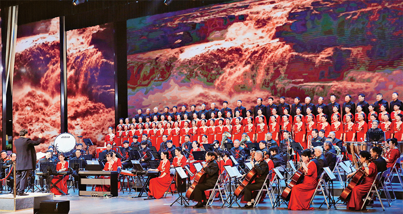 在中國人民抗日戰(zhàn)爭暨世界反法西斯戰(zhàn)爭勝利80周年之際,鐫刻民族記憶的《黃河大合唱》等經(jīng)典旋律再度激蕩人心。圖為2025年8月20日在江蘇連云港演出的大型紅色抗戰(zhàn)主題《黃河大合唱》音樂會現(xiàn)場。 視覺中國 朱華南/攝