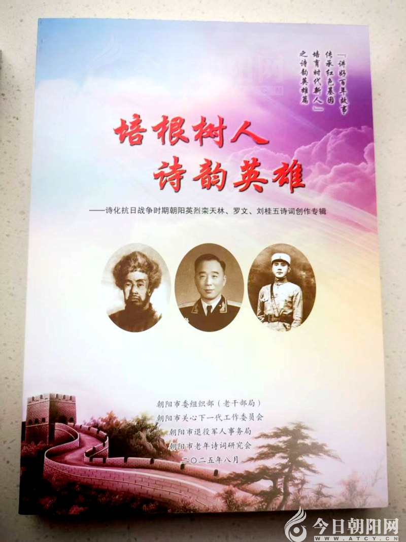 為紀念中國人民抗日戰(zhàn)爭暨世界反法西斯戰(zhàn)爭勝利80周年,遼寧省朝陽市老年詩詞研究會(以下簡稱“老詩研會”)在朝陽市委組織部(老干部局)、市關心下一代工作委員會和市退役軍人事務局的領導下,以《培根樹人 詩韻英雄》為主題,用詩詞形式歌頌朝陽籍趙尚志、欒天林、羅文、劉桂五、高體乾、張士毅、烏慶霖、郭文連等八位抗日民族英雄。“老詩研會”的52名詩詞志愿者歷時8個月,新創(chuàng)作詩詞4000余首,印刷成三冊詩集(見照片1),順利完成《培根樹人 詩韻英雄》紅色詩詞創(chuàng)作三部曲,向中國人民抗日戰(zhàn)爭暨世界反法西斯戰(zhàn)爭勝利80周年獻禮!