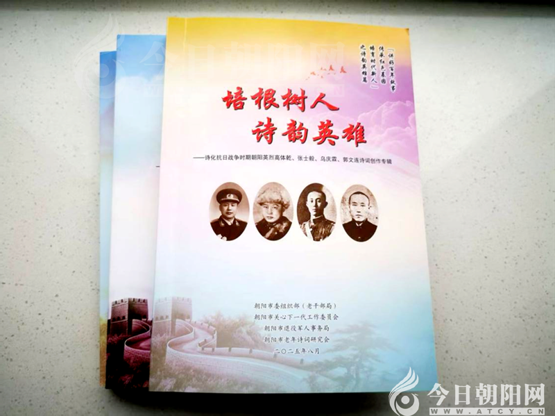 第三冊詩集(見照片5)是“老詩研會”繼《趙尚志》詩詞專輯、欒天林等三位英烈詩詞專輯后,為獻禮“中國人民抗日戰(zhàn)爭暨世界反法西斯戰(zhàn)爭勝利80周年”創(chuàng)作的第三部紀念專輯,聚焦高體乾、張士毅、烏慶霖、郭文連四位朝陽籍抗日英雄。