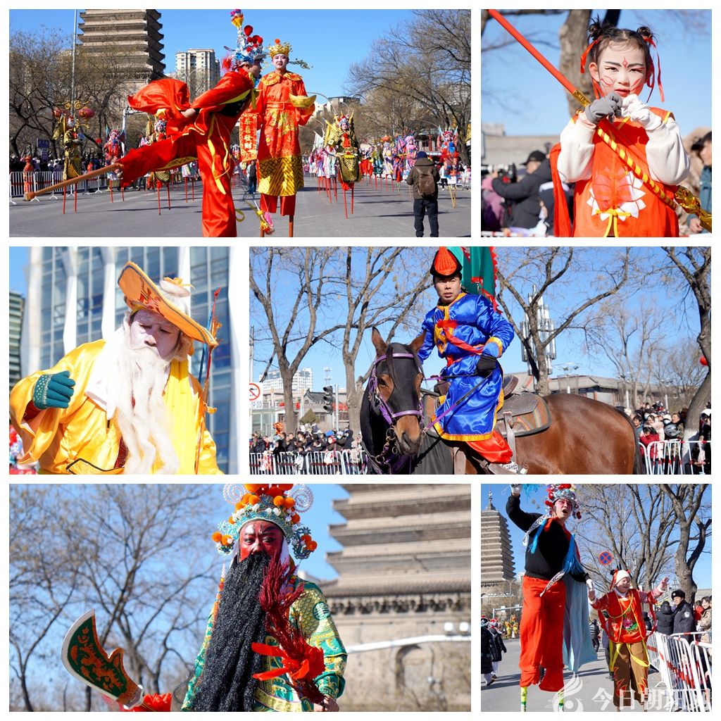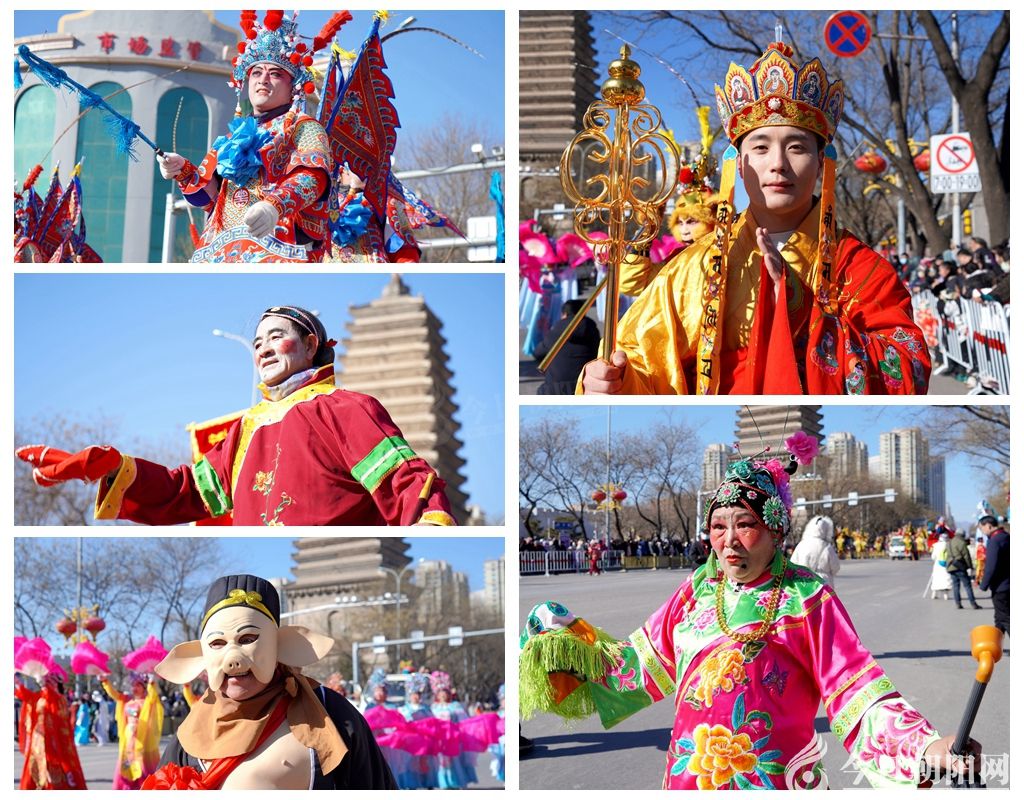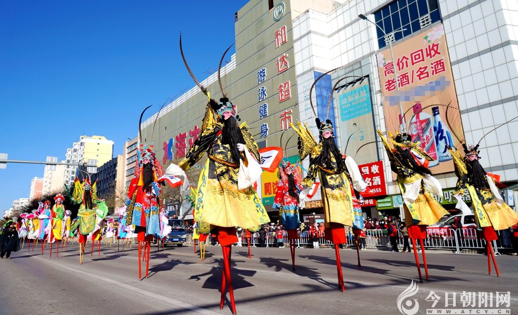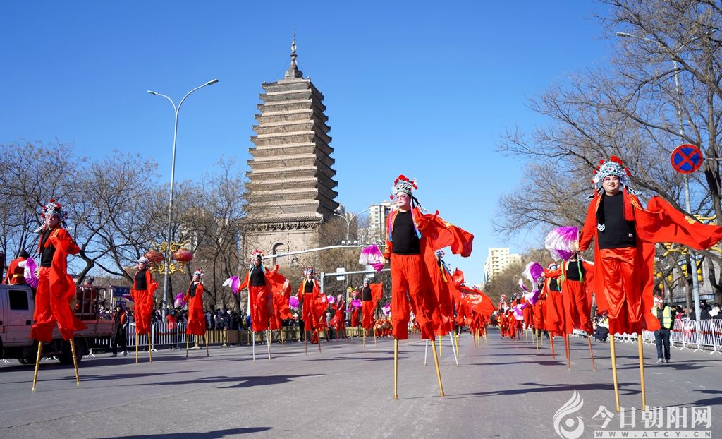 8時(shí)45分,伴隨著激昂歡快的鑼鼓聲響,新春秧歌展演正式拉開(kāi)帷幕。所有秧歌隊(duì)伍展演從朝陽(yáng)火車南站出發(fā),至濱河西街(壩上路)結(jié)束,全程2.2公里?,F(xiàn)場(chǎng),各種形式的表演精彩紛呈,令人目不暇接。表演高蹺秧歌的演員們伴著喧天鑼鼓、聲聲嗩吶,腳步輕盈、身姿搖曳,手中的彩扇上下翻飛,熱烈的節(jié)奏似春天的鼓點(diǎn),震撼人心;獨(dú)桿轎跑驢、旱船表演靈動(dòng)活潑、幽默風(fēng)趣,讓人忍俊不禁;背閣、抬閣表演宛如一幅流動(dòng)的民俗畫卷,從歷史深處緩緩走來(lái),將古老的故事與文化演繹得淋漓盡致;“黃河陣”表演氣勢(shì)恢宏,猶如一條歷史長(zhǎng)河,流淌者朝陽(yáng)人民的情感與智慧。形式多樣、獨(dú)具特色的秧歌表演,讓喜慶氣氛瞬間燃爆整個(gè)現(xiàn)場(chǎng),將人們帶入了一個(gè)無(wú)比歡樂(lè)幸福的海洋。