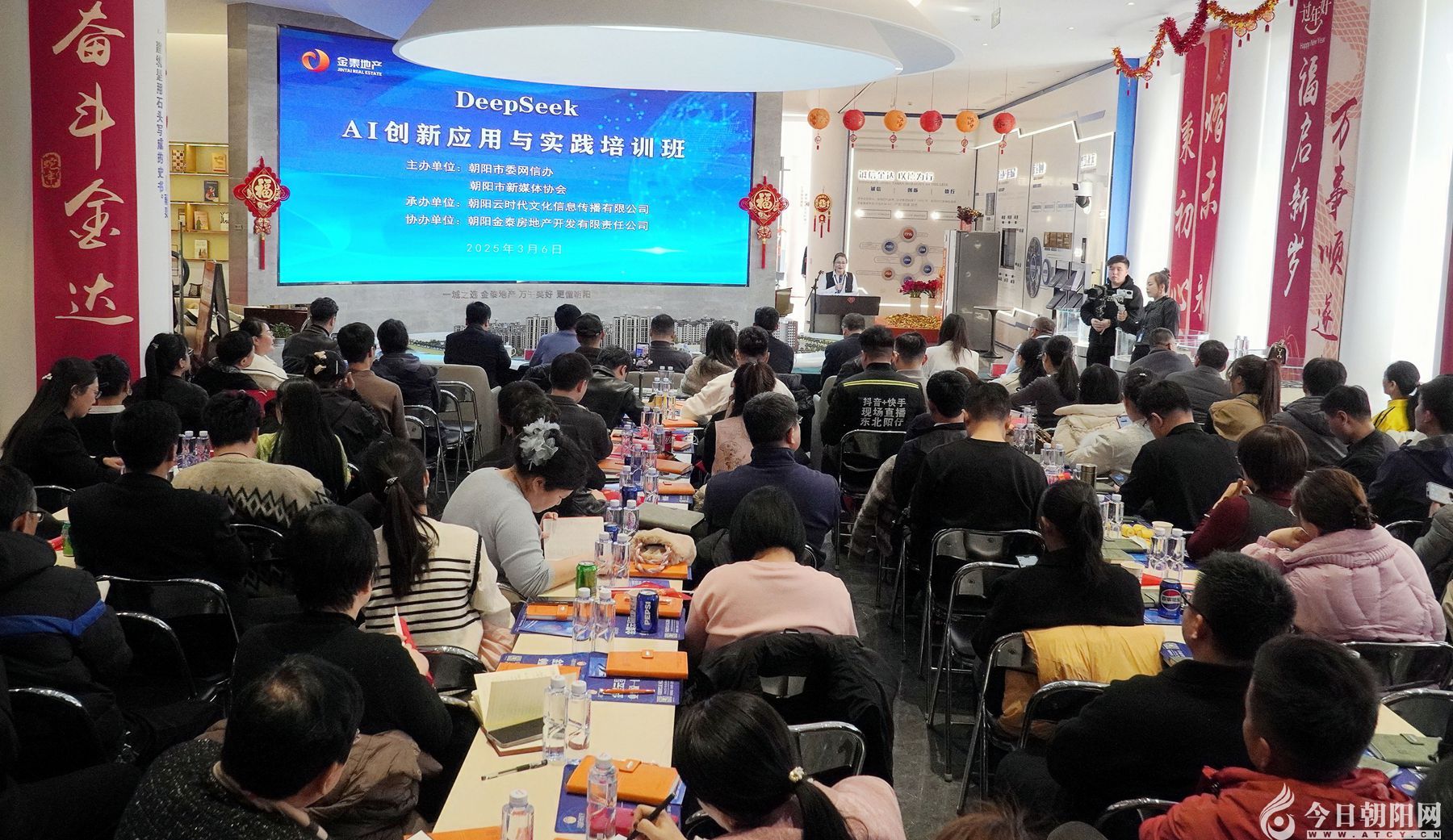 3月6日,由遼寧省朝陽(yáng)市委網(wǎng)信辦、市新媒體協(xié)會(huì)主辦,朝陽(yáng)云時(shí)代文化信息傳播有限公司承辦,朝陽(yáng)金泰房地產(chǎn)開(kāi)發(fā)有限責(zé)任公司協(xié)辦的“DeepSeek AI創(chuàng)新應(yīng)用與實(shí)踐”培訓(xùn)班在金泰城市書(shū)房一樓大廳舉行。此次培訓(xùn)緊扣當(dāng)下數(shù)字化發(fā)展脈搏,旨在幫助新媒體從業(yè)者借助AI技術(shù)贏得行業(yè)競(jìng)爭(zhēng)優(yōu)勢(shì)。市委網(wǎng)信辦相關(guān)人員、市新媒體協(xié)會(huì)會(huì)員、新媒體行業(yè)從業(yè)者以及今日朝陽(yáng)網(wǎng)AI云信使等近160人參加培訓(xùn)。