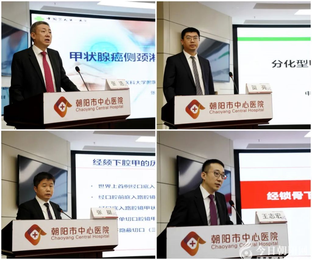 6月6日,“甲天下 行未來(lái) 遼寧省甲狀腺癌規(guī)范化診療——朝陽(yáng)行”學(xué)術(shù)會(huì)在朝陽(yáng)市中心醫(yī)院學(xué)術(shù)報(bào)告廳舉行。中國(guó)醫(yī)科大學(xué)附屬第一醫(yī)院副院長(zhǎng)張浩,甲狀腺外科王志宏教授、賀亮教授、張挺教授等權(quán)威專家蒞臨現(xiàn)場(chǎng)。朝陽(yáng)市中心醫(yī)院領(lǐng)導(dǎo)班子成員及各縣(市)區(qū)醫(yī)院代表參加,會(huì)議由朝陽(yáng)市中心醫(yī)院甲狀腺外科負(fù)責(zé)人張紫陽(yáng)主持。