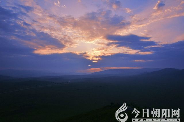 “大漠孤煙,長河落日”,是詩人描寫的大漠的壯觀景色。到草原來,看日落也別有一番情趣。落日像個淘氣的孩子跟我們捉迷藏,一會躲到云彩里,一會又偷偷露出半邊臉,那云竟也像太陽忠實的隨從,跟著太陽不時地變換形狀和顏色,像棕紅的駿馬,像橘黃的花盤,像粉色的睡裙,越來越淡,最后太陽沉入了地平線,在天邊反射出漫天的紅霞,就像熊熊的火焰。落日的余暉撒向草原,給草原披上了一層金色的光芒,讓草原更加嫵媚動人起來。