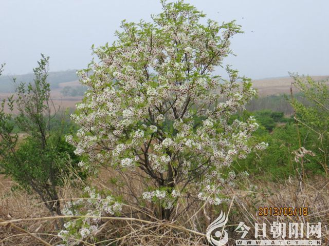 遠(yuǎn)遠(yuǎn)望去,華龍山遠(yuǎn)山含黛,蒼蒼莽莽,綠浪起伏。千畝左右的文冠果園在山下的一個(gè)大山坳里,隱約已見一片片的白色。