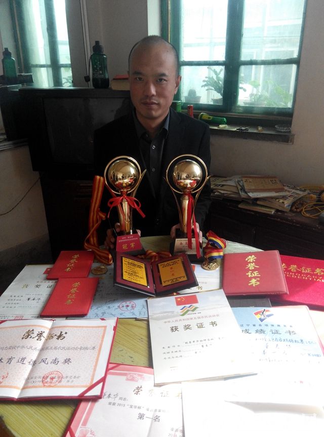 在凌源象棋協(xié)會(huì)一行人的陪同下,一個(gè)平房小院中,我們見到了號(hào)稱“游劍江湖獨(dú)行俠”的象棋名手董春華。他身材瘦高,沉默寡言。只有說起象棋,才雙目如電,滔滔不絕。在他居住的小屋里,一盤殘局?jǐn)?shù)個(gè)棋子散落在桌子上,顯然是他正在聚精會(huì)神、精心研究復(fù)雜精妙的棋局。案頭隨意擺放著一摞摞棋書,有的已經(jīng)翻看的卷頁甚至殘破了,正是這些棋書,陪伴他度過了無數(shù)個(gè)打譜演練、拆解棋勢(shì)枯燥而又寂寞的日子。墻邊的柜子上,擺放著幾座金燦燦的獎(jiǎng)杯和許多的大紅的獲獎(jiǎng)證書,這些榮譽(yù)見證了他在棋壇上曾有過的輝煌。孤寂的小屋,寂寞的棋子,耀眼的獎(jiǎng)杯,沉默的棋手,這一切超越時(shí)空幻化在一起。時(shí)空流轉(zhuǎn)中,回頭望去,董春華從學(xué)棋、崛起,登頂?shù)接螝v的一串串堅(jiān)實(shí)的足跡便越來越越清晰了。
