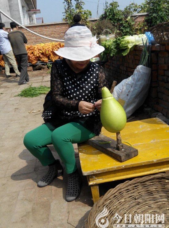 從葫蘆的神話里回望生活,鄉(xiāng)下老宅的葫蘆架就清晰可見,陽光明艷的夏天,葫蘆秧舉著潔白的花朵,提著祖孫三代,大小不一的葫蘆,盛宴一樣的繁華。而母親在葫蘆架下?lián)虾J的身影也依稀可見:她坐在木凳上,葫蘆坐在木橛上,頂上斜插著一根筷子,母親右手拈著的葫蘆撓子抵在葫蘆上,左手握住筷子一圈一圈地轉(zhuǎn),葫蘆條從撓子的小嘴里迅速地吐出,像長(zhǎng)長(zhǎng)的絲,也像葫蘆脫下的綠衣裳。母親一層一層地?fù)希J一件一件地脫,越脫衣服顏色越淺,里面的內(nèi)衣潔白如雪。越脫葫蘆越苗條,直到露出孕育種子的肚腩腩。然后,葫蘆條晾在陽光下暴曬。曬干的葫蘆條再編成辮子儲(chǔ)存起來,以備青黃不接時(shí)填補(bǔ)餐桌上的空白。這時(shí)候,葫蘆就從神話里遙不可及的精靈變成了人間煙火中貼心貼意的美味。