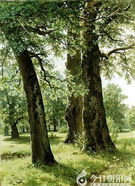 許多年前的一個(gè)夏天,在金山嶺長(zhǎng)城坐索道,從高空中俯瞰蜿蜒盤旋起伏的古長(zhǎng)城,怦然心動(dòng)的同時(shí),發(fā)現(xiàn)一些高大的樹,那是我從未見過的樹種,像俄羅斯畫家希施金油畫里的大樹,神秘而令人敬畏。樹干高聳,樹枝繁茂,葉子鋸齒般開裂,像涂了油脂般閃光,上面綴著簇?fù)淼南鸸睦镩W過一個(gè)念頭,這一定就是橡樹,詩(shī)人舒婷《致橡樹》里寫到的樹,是偉岸的樹。