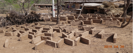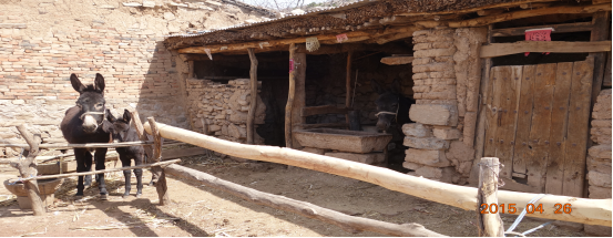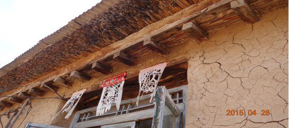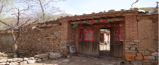 民居三三兩兩地散落在山腳下,多是上世紀(jì)六七十年代,北方農(nóng)村最普遍的那種老式平房,青石壘出半人高厚實的房基,也有的人家一石到頂,在山墻的四角和門窗口砌了磚垛,土坯碼起的墻圍掛了泥面,平展,擋風(fēng)。走近了仰觀,梁柱上鋪了厚厚的房笆,成束的秸桿從檐下探出個坡狀,斷面糟爛黑漆,早失去了往昔的色澤。一副副木制的板門、窗欞斑駁粗糙,架框有些許翹棱走形。這樣的建筑因陋就簡,原汁原味。時下,在方興未艾的新農(nóng)村建設(shè)中已然很難見到。
