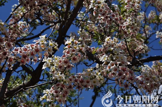 那日午間,同去的朋友撲克甩得正酣,我獨(dú)自走進(jìn)文冠果林深處,置身在一片花海之中,遠(yuǎn)眺對(duì)面山坡漫山遍野的文冠果,花開得正好,如雪,如云,如棉,像梨花又似杏花,花心紅的雅致,黃的脫俗,而花海之上蔚藍(lán)的天空,漂浮著幾朵白云,與文冠果一望無垠的花海相互襯托,那么壯觀,而又那么凄美,其景動(dòng)人,其情感人,我不禁淚流滿面。感動(dòng)于你“我愛你時(shí)你正一貧如洗寒窗苦讀,離開你時(shí)你卻金榜題名洞房花燭”的無私的愛,感動(dòng)于你不為俗世所累,默默盛放在鮮為人知的角落,獨(dú)自開著謝著一個(gè)又一個(gè)生命的年輪;感動(dòng)于你的“默然相愛,寂靜歡喜”……